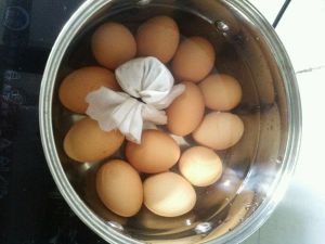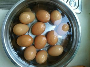 鸡蛋洗干净,放锅内加水煮,水开后再煮5分钟,捞出换新水。