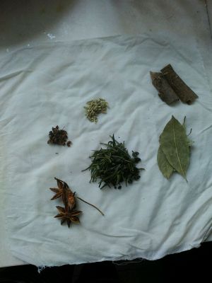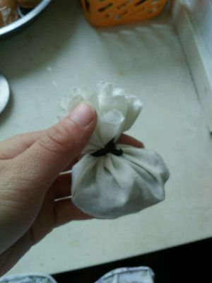家里要是有纱布的可以用纱布把调味料用纱布绳子绑起来,这样在煮茶叶蛋的时候就避免了满锅调味料的现象。没有的话也不要紧,可有可无。