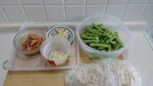 扁豆择好洗净控水,瘦肉切片加点盐,黄酒腌好。