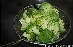 捞出西兰花,摆入盘中!