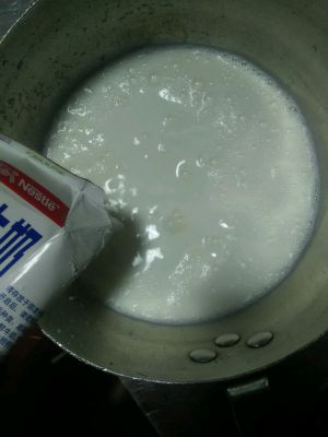 起锅倒入鲜奶,加入泡好的吉利片,慢慢搅匀