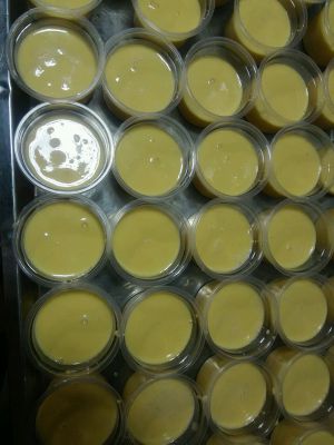 芒果奶油制作: 1. 吉利丁在冰水中泡软,沥干水分备用 2. 奶油搅打至软峰状,冰箱冷藏备用 3. 将芒果果茸倒入锅中加热,加入混合好的糖&玉米淀粉,搅拌避免结块 4. 中火继续加热,不断搅拌煮至沸腾,离火 5. 加入沥干水分的吉利丁,搅拌至完全融化混合均匀 6. 降温至30℃,加入打发好的奶油搅拌均匀 7. 将芒果奶油挤在布丁层上面,轻震使奶油更贴合平整,放回冰箱冷却至凝固