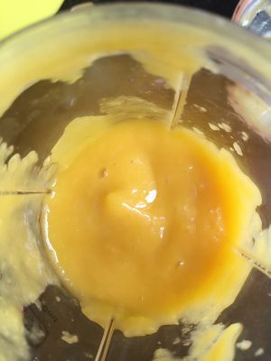 芒果去皮取果肉,加一丢丢的牛奶放入搅拌机打成泥状。