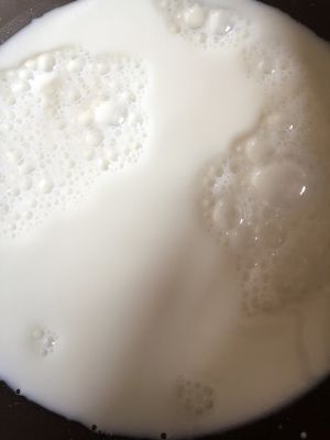 牛奶加热,倒入25克砂糖,把糖和融化,