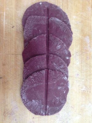 轻擀两下挤子,类似饺子皮,但皮要厚,中间没有圆肚儿,五个皮为一组,一个压一个摆好,用筷子在五个的中间线压一下