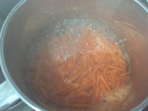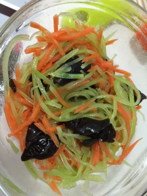 莴笋切丝,蒜一粒切末,我还给了一点点胡萝卜丝,漂亮一点。