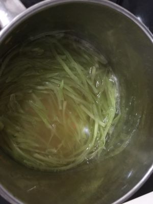 水烧开后放入莴笋,煮2分钟捞出马上过冷水,这样为了口感更脆