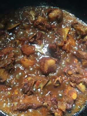 锅里放油,把冰糖放在锅里炒糖色,糖都有焦色时下排骨翻炒,然后吧所有的配料都放在锅里一起炒,