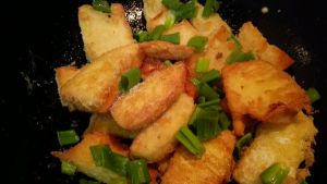 煎好的馒头片出锅撒上孜然粉,香香的煎馒头就完成啦!撒上孜然粉好吃很多哦~~