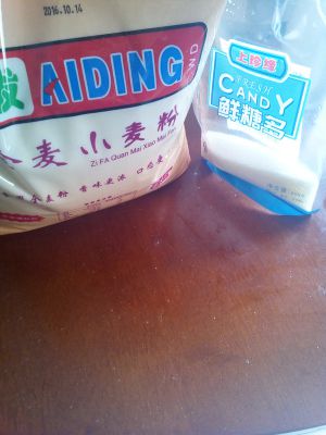 我准备的是自发面粉和白砂糖,首先要先在一个碗中倒入白砂糖,(根据自己喜欢程度,甜点就多倒些)再倒入开水,搅拌使其融化。