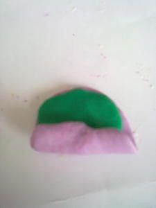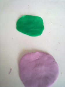 事先声明哈,这是橡皮泥演示的将醒发好的两色面团分别揉搓排除空气后,分别取一块擀成面皮。两块面团可以同等大小也可以大小不一