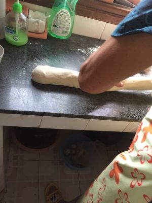 揉好后捏成长条状,不可太细条,中等宽就好。