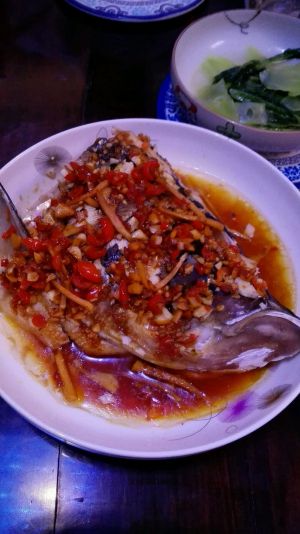 蒸好的鱼头,剁椒汁融入鱼头,酸辣咸香。