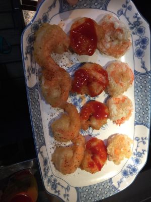 虾尾1斤半,去虾线,用盐清洗四遍并开背 冷锅下油,热油下虾尾,炸熟捞出。