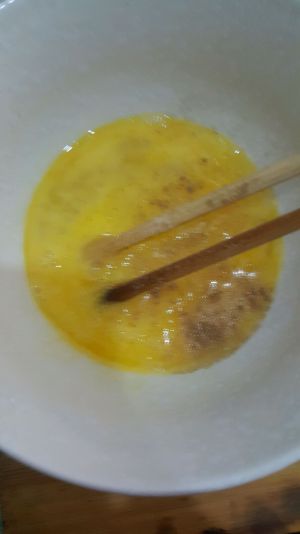 鸡蛋加盐可以适当放一些王守义(哈哈。也就是十三香)打散。加几勺水(为了给每个馍馍都沾上蛋液)当然土豪也可以再多打几个鸡蛋。