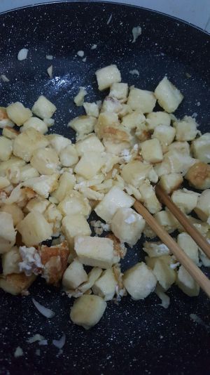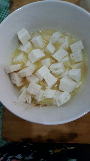 锅里倒油,加热,最好把馍馍一次全倒进去。
