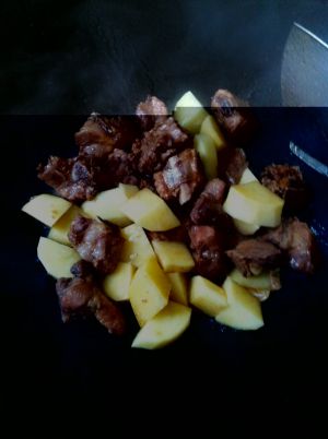 大概十分钟,加入土豆块,再加15毫升水,然后小火