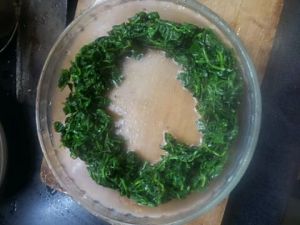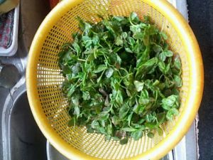 排骨烂后,水烧到还剩三分之一的时候,另起一锅,加少许油,猛火快炒豌豆菜,加少盐,起锅摆盘.