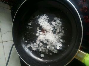 油里放冰糖,小火,小火,小火,切记!还有把自己保护好,冰糖会飞溅的!