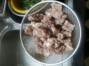 依次加入备好的姜葱蒜料酒,再加入生抽调色.加入开水淹过排骨小火炖30一40分钟左右