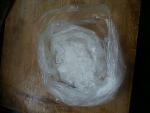 最重要的,取适量冰糖,装入保鲜袋中用刀背敲碎.