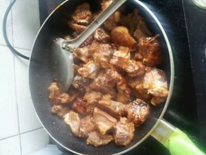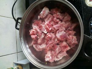 起油锅,放个小料炒香,加入排骨翻炒五分钟,加入小25毫升水“开水”,文火