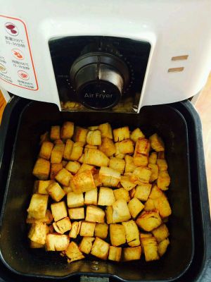 锅内倒三大勺油,下馒头片煎至焦黄上色