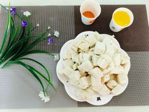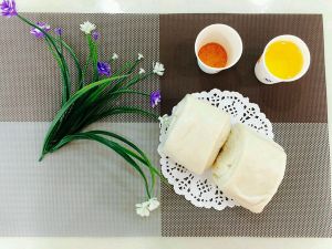 第五步:揉面团,揉成圆柱填,然后用刀切成一个个馒头