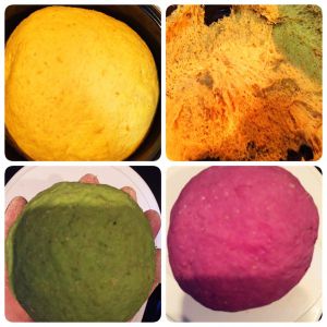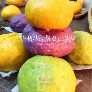 三色馒头就完工啦!如果觉得发酵揉面过程这里写的不详细,各位可以看圆点妈前面的南瓜馒头帖子,都是大同小异的!希望你们也能做出漂漂亮亮的馒头!