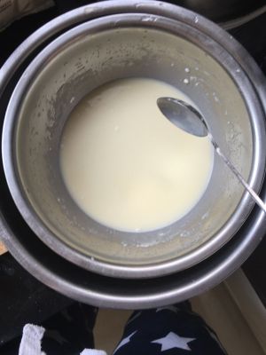 奶油,牛奶,砂糖放入锅中加热至白糖溶化
