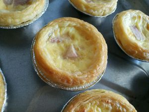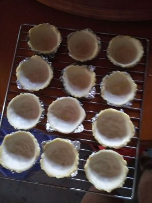 注意:塔皮需先解冻5-8分钟后方可使用。烤箱预热210度,中层,上下火,约20分钟左右即可. 出炉拉,美美嗒!