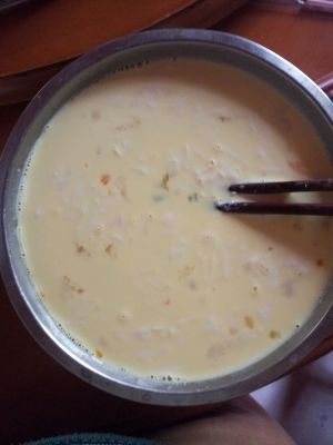 把鸡蛋倒入凉了的奶里面搅拌均匀