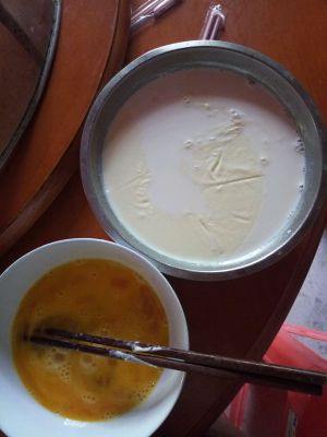 把牛奶和淡奶油加白砂糖煮好放一边等凉了,拿另一个碗打好鸡蛋