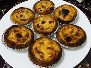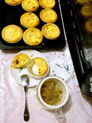倒入挞水,八分满(可以先少倒一点,然后分匀,十个的量刚刚好)。