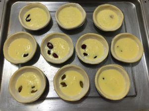 挞皮中加入蔓越莓、葡萄干或任意水果。