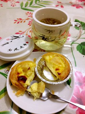 预热烤箱,把饧好的挞皮放上挞液,放入烤箱180度,25分钟
