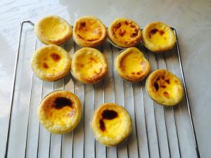 椰挞烤好了很烫,等放得有点余温时就可以吃,非常好吃又酥,即使冷了也是酥的。