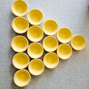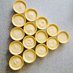 蛋挞皮拿出来不需要解冻,直接摆好倒入八分满
