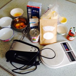 鸡蛋、纯牛奶、沙糖、容器那些备好