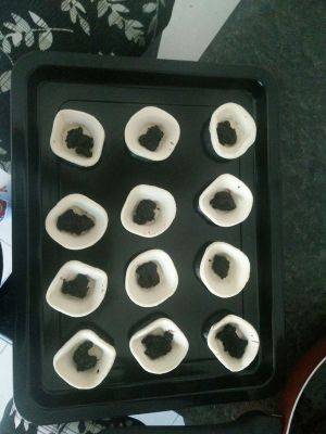 烤箱预热,把前面拌好的蔬菜丁分装到挞皮里,不要太多