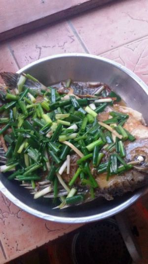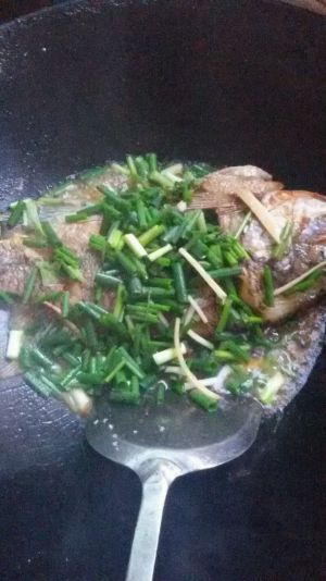 鱼洗净,腌些盐;葱切段,姜切丝备用