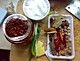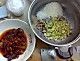 这就是味碟;碗最下面有剁好的榨菜粒,上面是熟黄豆,熟豌豆也可以,碗里在加点芝麻油,香菜,葱花,熟芝麻粉,味碟就做好了