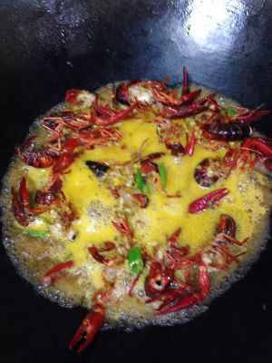 蒜泥炒香加入小龙虾,在加入啤酒 加盐 收干汤汁 鸡精调味