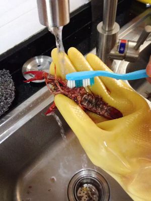 小龙虾好吃,就是清洗太麻烦了。用牙刷将表面和腹部刷洗干净