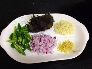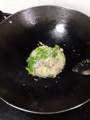 热锅下油,除了紫苏不放,其它全倒进去炒香