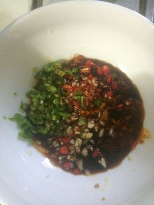 把2加入生抽、陈醋、麻油、辣椒油调匀