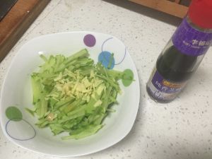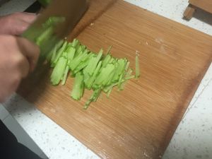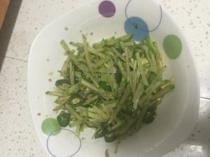 然后把胡萝卜丝,辣椒,香油,冰糖,白醋适量搅拌。