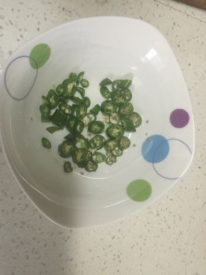 姜丝、萝卜丝和辣椒段都放入大碗里。