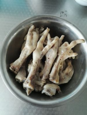 鸡爪焯水,洗净,高压锅十分钟煮烂,捞出待用