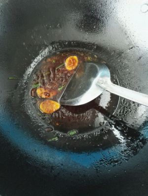 小火烧锅,加入葱花,生姜,油,生抽,糖,料酒,豆瓣酱